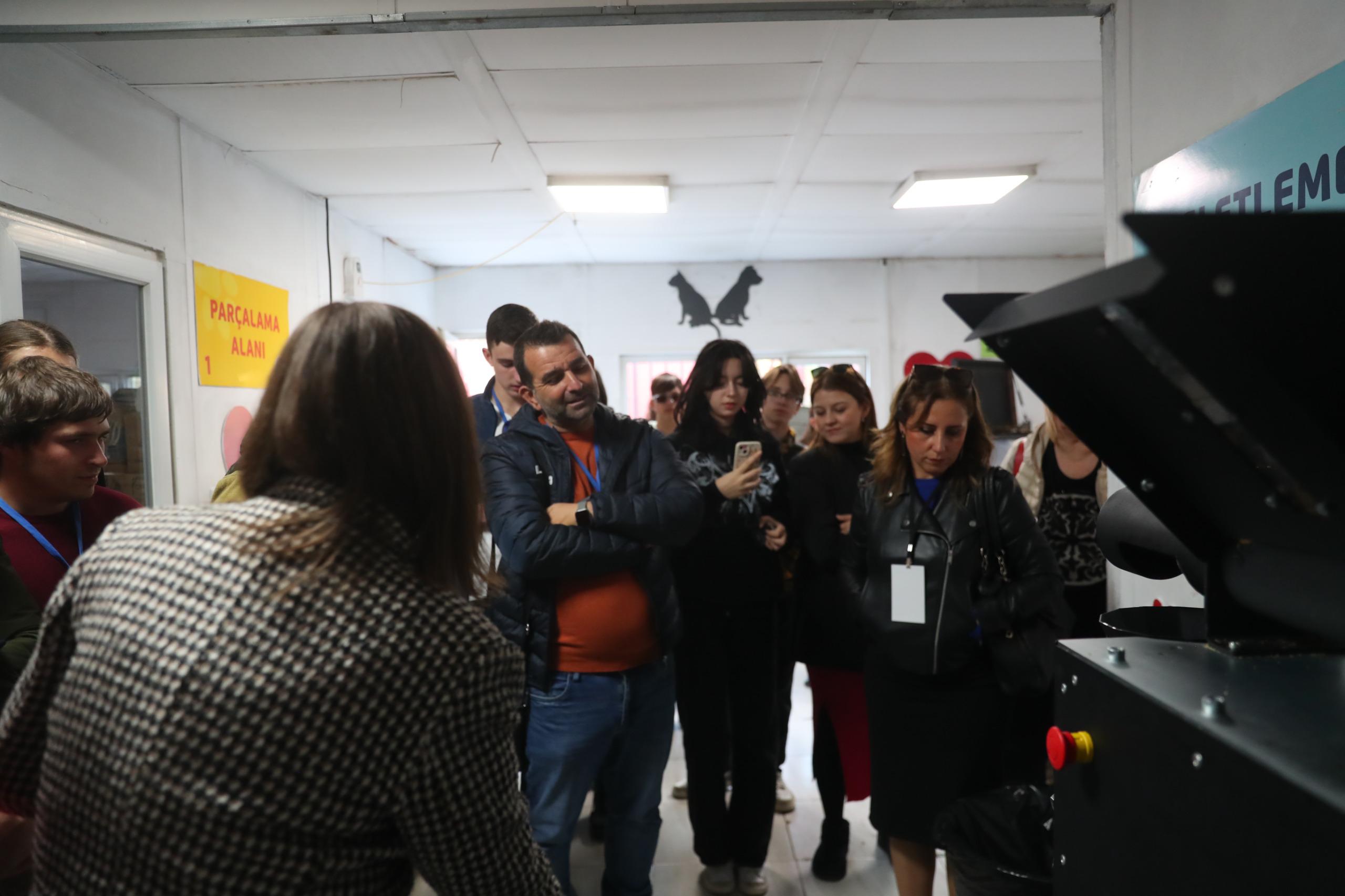 Lütfi Ege Anadolu Lisesi ve Erasmus öğrencileri, Pet Cafe ve Mama Üretim Tesisi ile 1. Sınıf Atık Getirme Merkezi’ni ziyaret etti. Ziyaret sırasında öğrencilere çalışmalar hakkında görevliler tarafından detaylı bilgi verildi. Öğrenciler geri dönüşüm ve sıfır atık çalışmalarını yerinde incelediler.