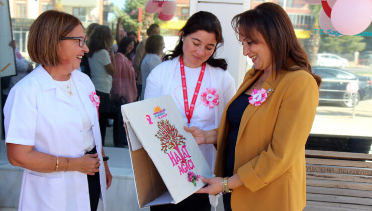 Etkinlik sonunda; İl Sağlık Müdürü Uz. Dr. Berna Öztürk’e Merkezefendi İlçe Sağlık Müdürü Uz. Dr. Mine Solakoğlu tarafından Müdürlük ve KETEM çalışanlarının dantel el işi ile yaptığı meme kanseri sembolü pembe kurdeleli tablo ile Ebe Esma Akduman tarafından nakış işlemeli hayat ağacı tablosu hediye edildi. Meme kanserine dikkat çekmek ve bir sonraki yıl düzenli tarama yaptıran kadın sayısının artması dilekleri ile pembe balonlar havaya bırakıldı. HABER MERKEZİ