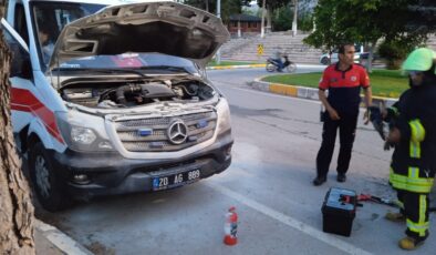 HASTA NAKLİ GERÇEKLEŞTİREN AMBULANS ALEV ALDI HASTA NAKLİ GERÇEKLEŞTİREN AMBULANS ALEV ALDI