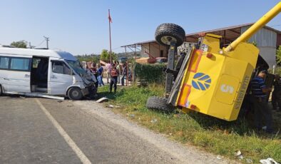SERVİS MİNİBÜSÜ BİÇERDÖVERE ÇARPTI; 2’Sİ AĞIR 13 YARALI SERVİS MİNİBÜSÜ BİÇERDÖVERE ÇARPTI; 2’Sİ AĞIR 13 YARALI