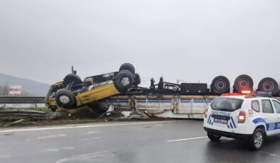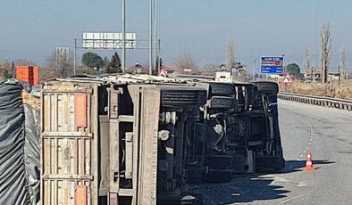 SAMAN BALYASI YÜKLÜ TIR DEVRİLDİ