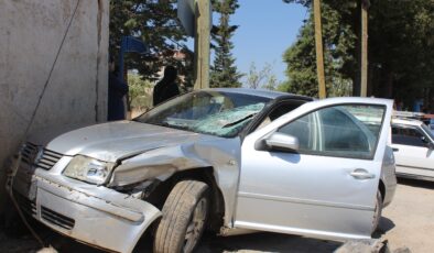KONTROLDEN ÇIKAN ARAÇ DİREĞE ÇARPIP TAKLA ATTI