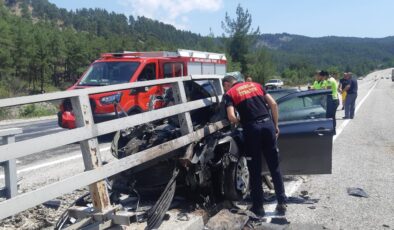 OTOMOBİL KÖPRÜYE OK GİBİ SAPLANDI: 3 YARALI