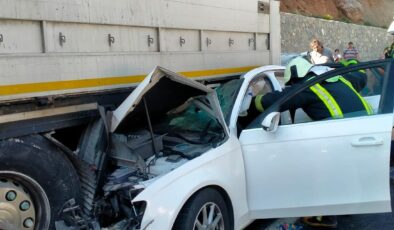 OTOMOBİL TIRA ARKADAN ÇARPTI: 2 YARALI
