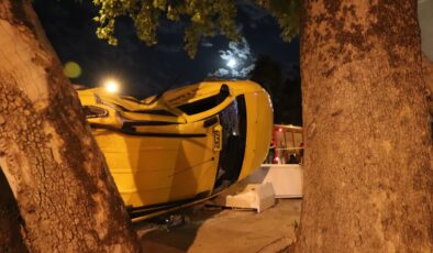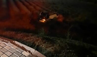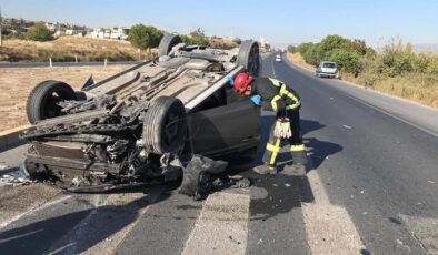 VİRAJI ALAMAYAN OTOMOBİL TAKLA ATIP TERS DÖNDÜ; 1 YARALI