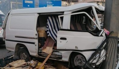 CAMİ DUVARINA ÇARPAN MİNİBÜSÜN SÜRÜCÜSÜ AĞIR YARALANDI