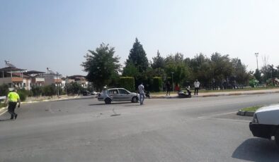 OTOMOBİLLE ÇARPIŞAN MOTOSİKLETTEKİ İKİ KURYE YARALANDI
