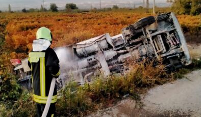 DOLU YAKIT TANKERİNİN DEVRİLDİĞİ KAZADA FACİADAN DÖNÜLDÜ