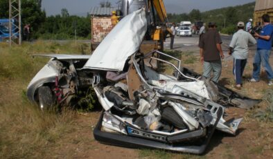 KARŞI ŞERİDE GEÇEN OTOMOBİL ÇEKİCİ ARAÇLA ÇARPIŞTI: 1 ÖLÜ,2 YARALI