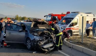 ALAŞEHİR’DE İKİ OTOMOBİL ÇARPIŞTI: 8 YARALI