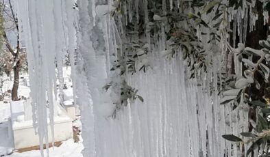 PATLAYAN ÇEŞME AĞAÇTA BUZ SARKITLARI OLUŞTURDU