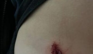 BACAĞINA SAPLANAN BIÇAKLA KAÇIP CANINI KURTARMAYA ÇALIŞTI