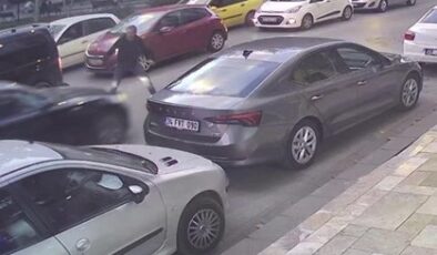 KENDİSİNE YOL VERMEYEN SÜRÜCÜYÜ TEK YUMRUKTA YERE SERDİ