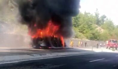 SEYİR HALİNDEKİ YOLCU OTOBÜSÜ ALEV ALEV YANDI