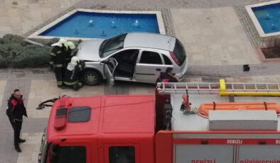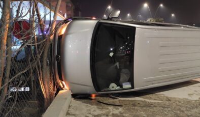 KONTROLDEN ÇIKAN OTOMOBİL TRAFİK IŞIKLARINA ÇARPARAK DURABİLDİ