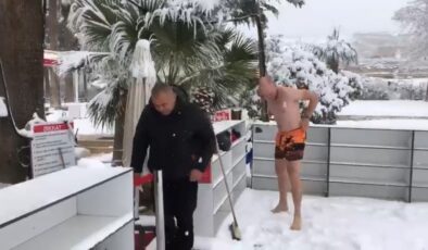 PAMUKKALE’DE 30 SANTİMETRE KARDA YÜZME KEYFİ