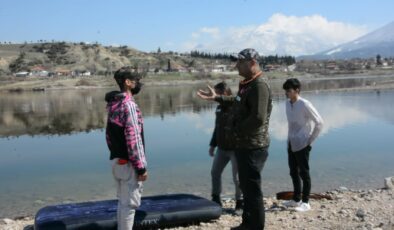 ADRENALİN OLSUN DİYE ŞİŞME YATAKLA BARAJ GÖLÜNE GİRDİLER