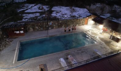 EKSİ 6 DERECE SOĞUK HAVADA TERMAL HAVUZUN KEYFİNİ ÇIKARDILAR