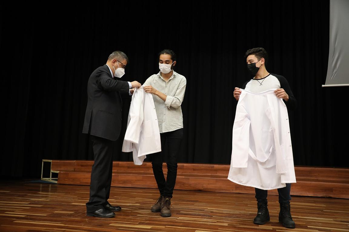 Rektör Prof. Dr. Ahmet Kutluhan’ın konuşmasının ardından Tıp Fakültesi’ni bu yıl kazanan öğrencilerden Mohammad Abusenenh ve Emre Can Kuzucu’ya beyaz önlüklerini giydirdi. Törenin devamında Rektör Prof. Dr. Kutluhan, PAÜ Tıp Fakültesi ve PAÜ Hastanelerine bağışta bulunan hayırseverlere şilt takdiminde bulundu.