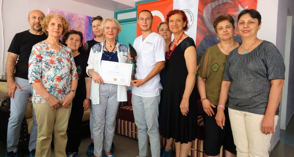 Denizli’de yaşayan 26 yaşındaki eczacı Hüseyin Safa Toprak, tedavi sürecinde saçları dökülen onkoloji hastaları için örnek bir davranışa imza attı. Sağlıklı uzaya bilmesi için aylık 500 TL’lik özel ürün kullandığı saçını, onkoloji hastalarına peruk yapılması için bağışlayan genç eczacının bu davranışı takdir topladı. 2 yıldır özelle baktığı baktığı saçlarını kestiren Toprak, Onkoloji Gönüllüleri Derneği Denizli Şube Başkanı Nejla Aslan tarafından teşekkür belgesiyle onurlandırıldı.