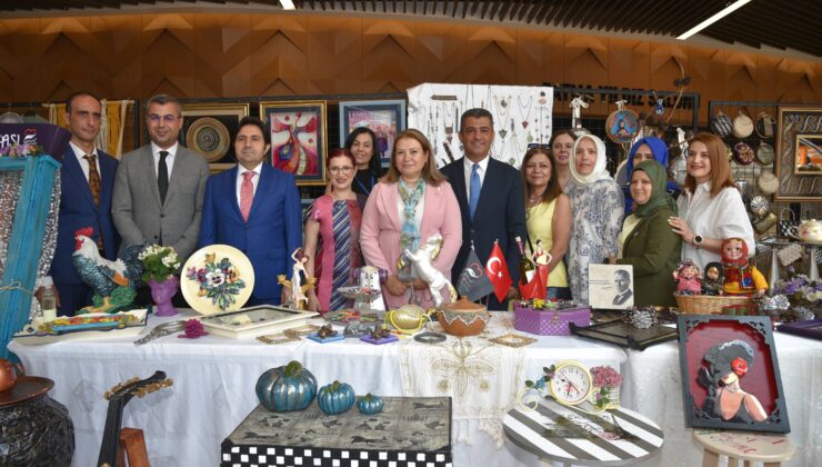 Açılış programının sonrasından protokol heyeti sergi salonuna geçerek Merkezefendi Halk Eğitimi ve beş halk eğitimi merkezleri kursiyerlerin yıl boyunca el emekleri ile hazırladıkları ürünlerinin yer aldığı serginin açılışı kurdele kesilerek gerçekleştirdi.