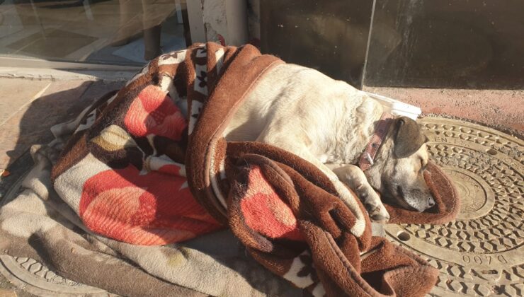 Yapılabilecek en ufak etkili yardımlar ise onları hayata kalmasını sağlıyor. Denizli’de işlek cadde de bulunan bir köpeğin soğuktan etkilenmemesi için altına karton serilerek, üzeri battaniyeyle örtüldü. Esnaf, soğuk hava nedeniyle dükkan önünde yatan hayvanlara bakmayı ihmal etmiyor.