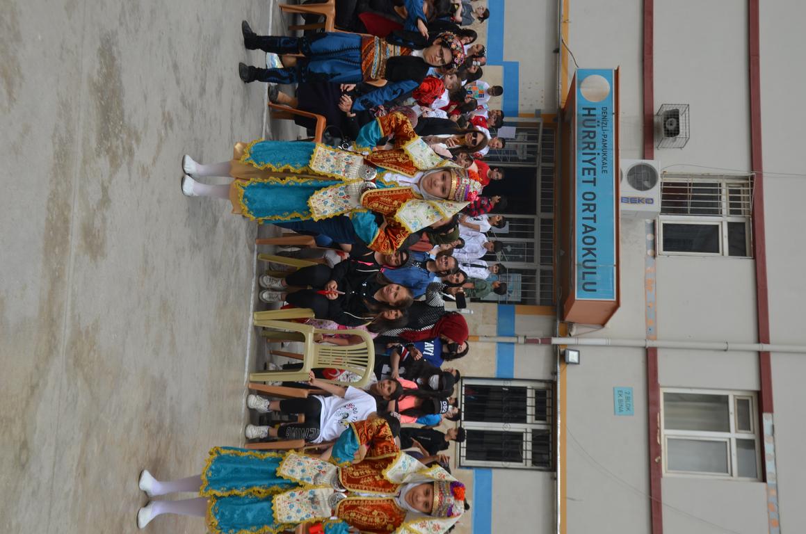 23 Nisan Ulusal Egemenlik ve Çocuk Bayramı ve TBMM’nin kuruluşunun 102. yılı bakanlığa bağlı resmi ve özel tüm ilköğretim kurumlarında çeşitli etkinliklerle kutlandı. Ülkenin her yerinde olduğu gibi Hürriyet Ortaokulu’nda da bayram coşkusu aynı heyecanla yaşandı. Hürriyet Ortaokulu öğretmenleri öğrencileri ile birlikte 23 Nisan Ulusal Egemenlik ve Çocuk Bayramı dolayısıyla çeşitli etkinlikler düzenledi. Hürriyet Ortaokulu okul müdür yardımcıları İlkay Burgun ve Sedef Şafak öncülüğünde öğrenciler farklı ve güzel etkinliklere imza attılar. Hazırlanan etkinlikler öğrenciler tarafından büyük bir heyecanla sergilendi. Etkinlikler arasında şiir okuma, dans gösterileri ve halk oyuncaları yer aldı. Öğrenciler 23 Nisan gösterilere İstiklal Marşı okuyarak başladılar. 5 c sınıfı öğrencileri tarafından oluşturulan korodan marşlar ve bayram şarkıları seslendirildi. Ardından Hürriyet Ortaokulu 6 C sınıfı öğrencileri ‘erik dalı’ oyununu oynadılar. Daha sonra öğrenciler 23 Nisan temalı şiirlerini okudular. Okunan şiirler öğrencileri ve gösteriye gelen tüm velileri duygulandırdı. Öğretmenler öğrencileri ile birlikte çeşitli oyunlar oynayıp oyun havaları eşliğinde birlikte dans etti. Bayram töreninin ardından okul öğrencileri, öğretmenler ve veliler hatıra fotoğrafı çektirmeyi de ihmal etmediler. Daha sonra okul müdür yardımcısı İlkay Burgun bayramla ilgili konuşma yaptı. Önceki yıllardaki etkinliklerinden bahseden Burgun: “Salgından sonra öğrencilerimizle, siz değerli velilerimizle bir arada olmak çok güzel bir duygu. Bu güzel duyguyu yeniden bir arada yaşayabilmekten dolayı çok heyecanlıyız. İnşallah bu salgın gibi tekrar felaketler yaşamayız da milli gururumuzu bayramlarımızı yeniden birlikte yaşayıp, yaşatabiliriz. Bugün buraya gelen herkese çok teşekkür ediyorum. Bugün gösterilerde emeği ğeçen tüm meslektaşlarımı ve öğrencilerimizi canı gönülden teşekkür ve tebrik ediyorum. Ayrıca okulumuzun tanıtımında bizlere olan desteğini hiç esirgemeyen Horoz Medya ailesine Özellikle Hacer Aklam’a teşekkürü borç bilirim. Hepimizin 23 Nisan Ulusal Egemenlik ve Çocuk Bayramı kutlu olsun.” dedi.