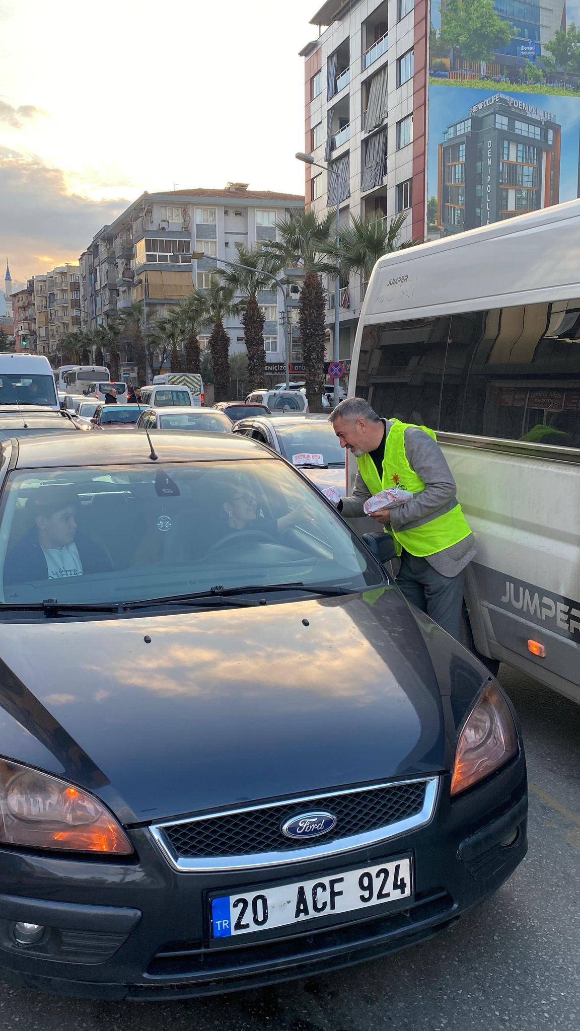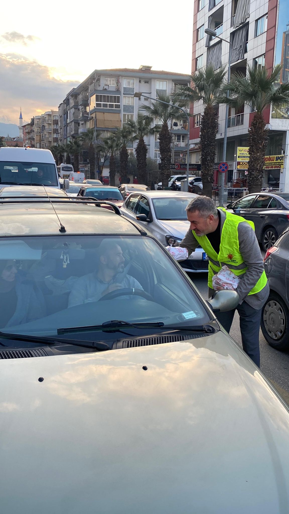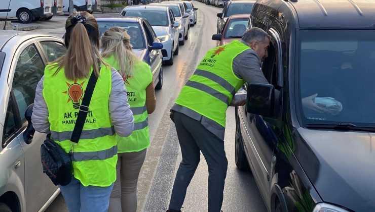 Denizli’de AK Parti Pamukkale İlçe teşkilatı tarafından “İftara 5 Kala Projesi” kapsamında trafikte olup iftara yetişemeyenlere Denizli Antalya yolu üzerinde iftarlık ikram paketi dağıtıldı. AK Parti Pamukkale İlçe Başkanı Osman Özpek ve yönetim kurulu üyeleri tarafından içinde hurma, su, meyve suyu ve sandviç bulunan iftarlık paketleri trafiğin en yoğun olduğu saatte, trafik ışıklarında bekleyen araçlara dağıtıldı. İftar saatinde yolda olup iftara yetişemeyenlere iftarlık ikramında bulunmanın huzur ve mutluluğunu yaşadıklarını anlatan İlçe Başkanı Özpek, “İftara 5 Kala Projesi”nin Ramazan ayının sonuna kadar devam edeceğini söyledi.