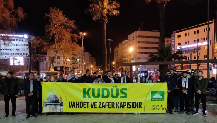 İsrail hükümetinin Filistinlilere ve Mescid-i Aksa’ya saldırılarına tepki göstermek amacıyla eylem düzenlendi. Pamukkale ilçesi Çınar Yeni Cami’de kılınan teravih namazını sonrası toplanan siyasi parti ve sivil toplum örgütü temsilcileri, İsrail’in çirkin saldırılarını protesto etti. Kur’an-ı Kerim tilavetiyle başlayan eylemde kuşuna HÜDAPAR İl Başkanı Hacı Şani, “Kudüs sevdası itikadıdır. Kudüs ve Mescid-i Aksa’yı seven bir nesil yetiştirmeliyiz. Anneler Selahaddinler büyütmelidir. Sivil toplum örgütleri Aksa için bir araya gelme plan ve programları yapmalıdırlar. Müslüman devletlerin başkanları bir araya gelmeli ve birlikler oluşturmalılar ve ancak o zaman Siyonist çeteyi Filistin’den atabilirler. Ukrayna savaşında şunu gördük ki Avrupa tüm kurum ve kuruluşları ile Rusya’ya yönelik yaptırımlar uyguladılar. Müslüman devletlerin de bir araya gelip bir birlik oluşturabilselerdi yaptırımlar uygulayabilir ve şu an yaşadığımız sorunların çoğu yaşanmayacaktı. İslam ülkeleri bir araya gelerek sadece petrol yaptırım güçlerini kullansalardı İsrail bugün Filistin’de yaptığı zulmü yapamayacak, Irak’ta Suriye’de işlenen cürümler işlenmeyecekti. Acilen öncelikle ümmetin tüm unsurları bir araya gelmeli birlik ve beraberliklerini tahkim etmelidirler” dedi. İsrail güçlerinin Mescid-i Aksa’nın kutsiyet ve mahremiyetini çiğneyerek sabah namazında saldırıya geçtikleri, bir çok Müslüman’ın yaralandığını, yüzlerce kişinin de alıkonulduğu hatırlatılan Şani, “Bu saldırıları kınıyor ve lanetliyoruz. Aksa’nın izzeti için bedenlerini siper ederek şehadet şerbetini içen şehitlerimizin şehadetini tebrik ediyor, yaralılara acil şifalar, esir edilenlerin de bir an önce özgürlüğüne kavuşmalarını niyaz ediyoruz. Bu işgal ve saldırıları bitirmenin tek yolu Kudüs ve Filistin topraklarında Siyonist işgalini tamamen kaldırmaktır. Bu da Filistin halkının şerefli ve izzetli direnişine ses olmak, bütün imkânlar seferber edilerek destek olmak, her zaman ve zeminde yanlarında olmakla mümkün olabilir” diye konuştu.