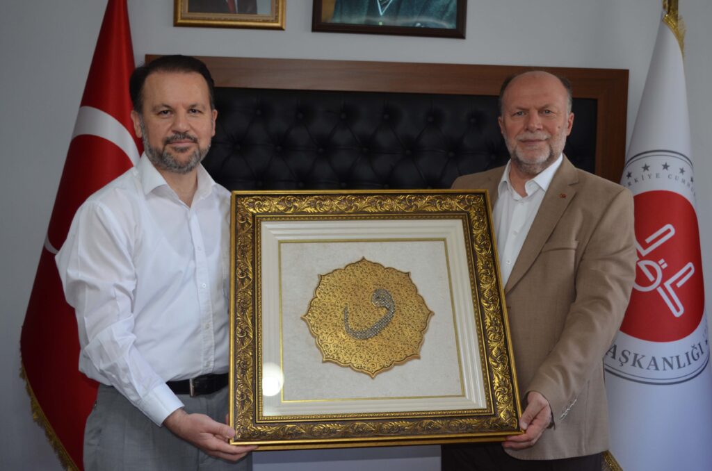 Müftü Palabıyık’ın günün anısına Müftü Aşık’a Hat Tablosu hediye etmesi esnasında çekilen hatıra fotoğraflarıyla ziyaret sona erdi.