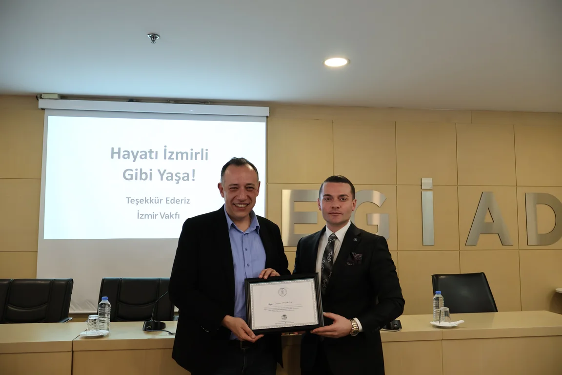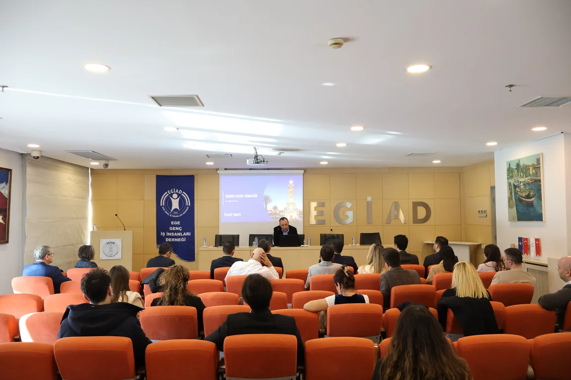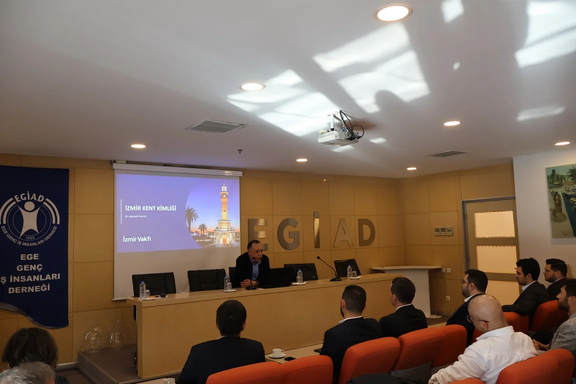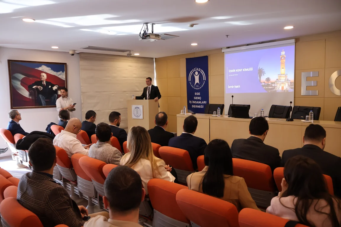 Ege Genç İş İnsanları Derneği (EGİAD), 18. Yönetim Dönemi’nde üyelerine ve topluma değer katmak ve İzmir’in sosyo-ekonomik kalkınmasına katkı sağlamak amacıyla etkinliklerine aralıksız devam ediyor. Bu doğrultuda, İzmir Vakfı iş birliğiyle düzenlenen “İzmir Kent Kimliği” başlıklı seminer, EGİAD dernek merkezinde gerçekleştirildi. Etkinliğe İzmir Vakfı Genel Müdürü Deniz Karaca ve EGİAD üyeleri katılım sağladı.