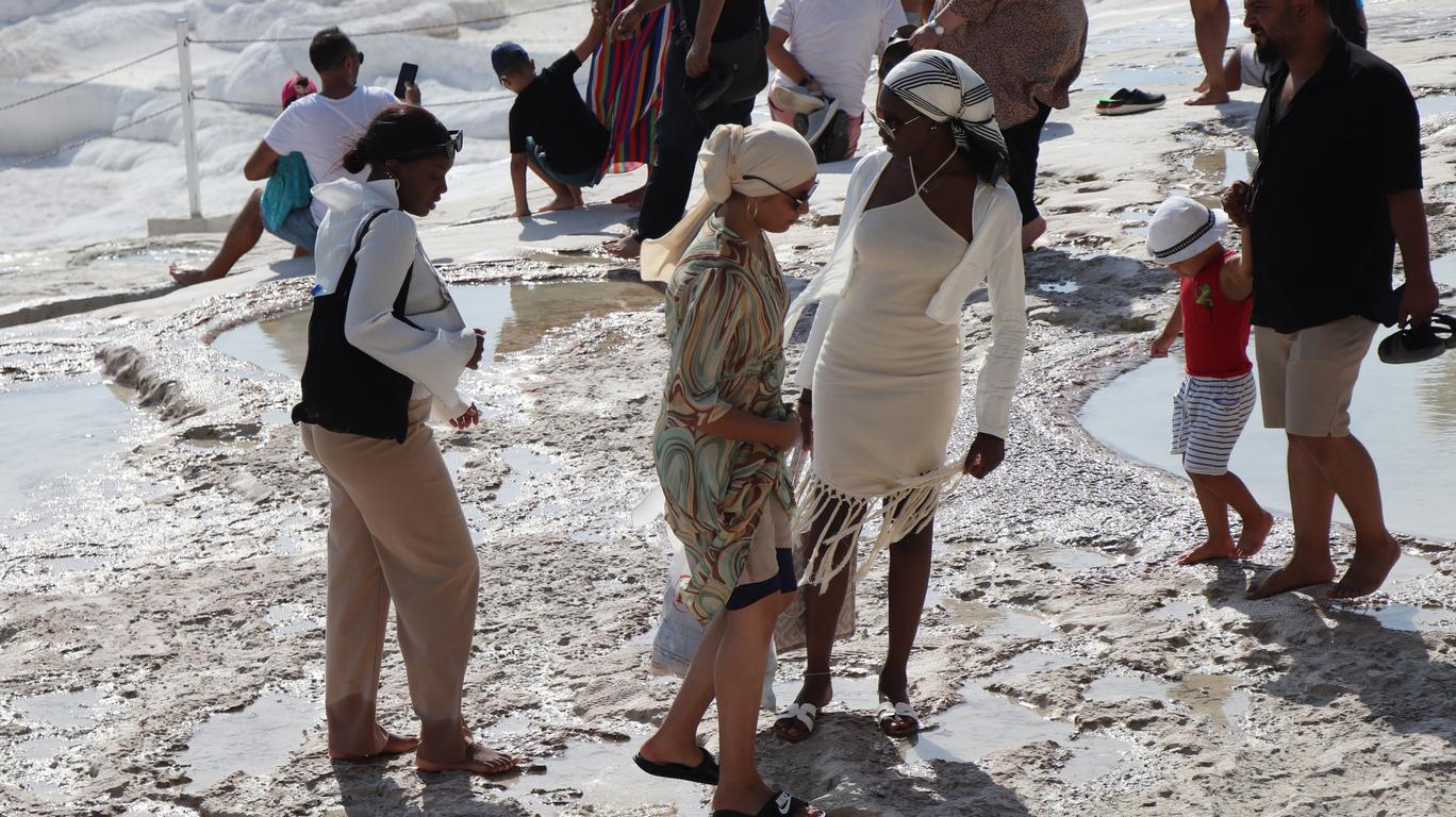 Travertenlere hayran kaldığını söyleyen Melika Shokri, “İran’dan geldim ama Antalya’da yaşıyorum ve Pamukkale’ye de ilk defa geldim. Burası yoğun ama çok güzel, yukarıdan ilk bakışta çok ilginç geldi. Buraya çok turistler geldiğine göre çok ilginç bir yer oluyor. İlk bakışta onları kar zannettim ama sonradan suyun çökeltisi olduğunu öğrendim” dedi. İngiltere’den Pamukkale’yi ailesiyle beraber görmeye gelen Samira haghjoo, “Londra’dan geliyorum, İran’da yaşıyorum ama Pamukkale’ye ilk defa geldim. Türkiye’ye ise ailemin yanına gelmiştim. Bana daha önce Pamukkale’yi tavsiye ettiler. Burayı çok beğendik, ilginç bir yer” şeklinde konuştu.