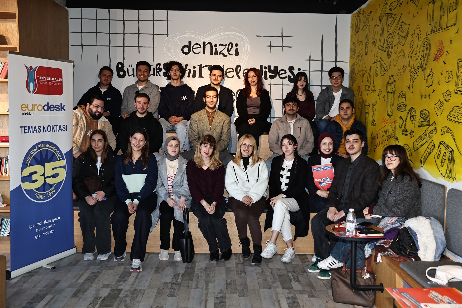 Pamukkale Üniversitesi’nde bulunan Denizli Büyükşehir Belediyesi Gençlik Noktası’nda Eurodesk Bilgilendirme toplantısı düzenlendi. Gençlik Meclisi ve Gençlik ve Spor Hizmetleri Daire Başkanlığı ortaklığında gerçekleştirilen programa Pamukkale Üniversitesi öğrenci topluluklarından temsilciler katıldı. Programda Eurodesk irtibat kişisi Bilge Naz Sak, ücretsiz Avrupa fırsatlarından bahsederken, Gençlik Meclisi Başkanı Demir Batur’da gençlik meclisi faaliyetlerini anlattı. Gençler Erasmus+ programı, Avrupa Dayanışma Programı ve birçok ücretsiz sunulan fırsat hakkında bilgi sahibi oldu. Bunun yanında Denizli Büyükşehir Belediyesi Gençlik ve Spor Hizmetleri Dairesi çalışmaları hakkında da bilgi sahibi oldular.