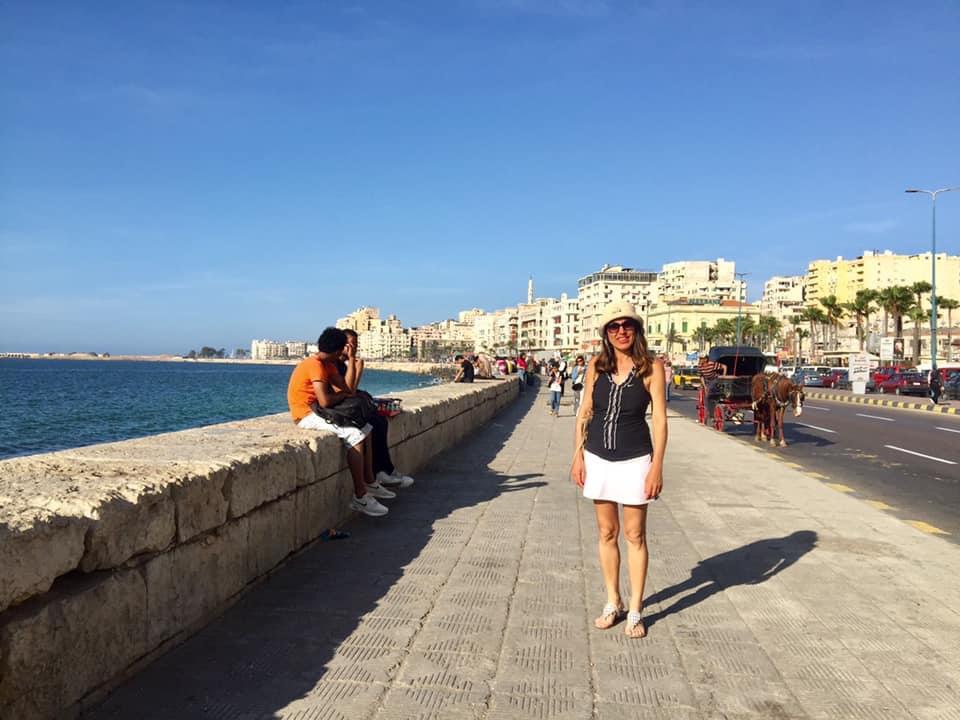 -İSKENDERİYE : Şehir, isminden de anlaşıldığı gibi M.Ö.332 yılında Büyük İskender tarafından kurulmuş. Mısır’ı Akdeniz’e bağlayan kıyı noktasında konumlanmış. Şehre gelir gelmez havasıyla bir Akdeniz şehrine gelmiş gibi hissediyorsunuz. Stanley Köprüsü 4 adet kulesiyle sizi karşılıyor. Köprünün altında da uzun sahiliyle Stanley Plajı yer alıyor. Dünyanın en yüksek ayrıca Antik Çağ’da dünyanın yedi harikasından biri olan Deniz Feneri ve o zamanın en büyük kütüphanesi olan İskenderiye Kütüphanesi burada bulunuyor. Kültür ve bilim merkezi olan kütüphane, iki milyondan fazla kitap ve binlerce elektronik kitap barındırıyor. Kütüphaneyi gezerken bilgisayar başında öğrencilerin ders çalıştığını gördük. Ayrıca kütüphanede müzeler ve sergi salonları bulunuyor. İç ve dış mimarisi ile görülmeye değer.  İskenderiye şehir merkezi çok hareketli. Deniz kenarında yürüyüş yapabileceğiniz uzun bir kordon boyu var. Ben İzmir kordon boyuna benzettim. Sizi bekleyen atlı faytonlarla da şehri gezmeniz mümkün. Görülmesi gereken bir yapı da, Kayıtbay Kalesi. İskenderiye Feneri’nin bulunduğu Faros Adası’nda yer alıyor. 1404 yılında inşa edilmiş. Ada boyunca alışveriş yapabileceğiniz stantlar ve nezih balık lokantaları bulunuyor. Mısır’da dolaşırken Türkiyeli olduğunuzu öğrendiklerinde “Hasan Şaş” laf atmalarını sıkça duyacaksınız. Kızıldeniz demişken de; Kızıldeniz ismi nereden geliyor ? İsmini, belli dönemlerde üreyen bir alg türünün salgısındaki pigmentlerden dolayı alıyormuş. Deniz bu dönemlerde maviden kırmızı renge dönüşüyormuş.