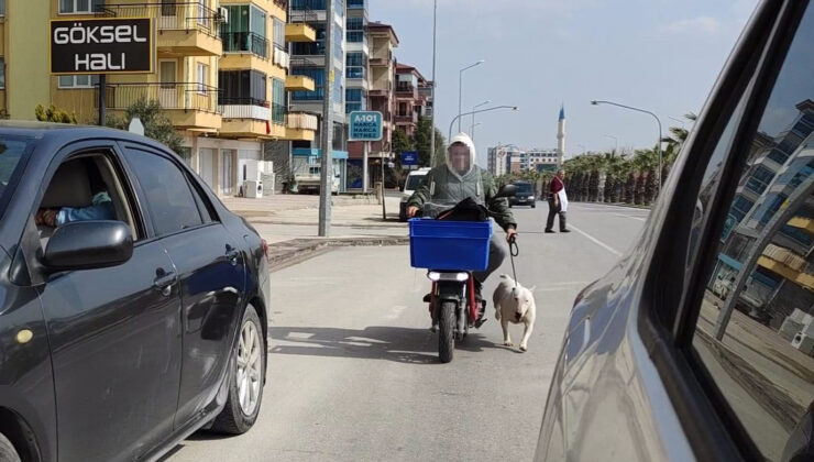Merkezefendi ilçesi 29 Ekim Bulvarında meydana gelen olayda; elektrikli motoruna yasak ırk köpeği iple bağlayan sorumsuz sürücü, akan trafiğe çıkarak köpekle beraber seyir etmeye başladı. Birçok kişinin tepki gösterdiği ve zaman zaman hızlanarak köpeği peşinden koşturan sürücü, kayıt altına alındığını fark edince ışıklarda bekleyen aracın yanına yanaştı. Burada hakaretler ederek kendisini tanıtan gazetecinin köpeği neden o şekilde götürüyorsunuz? sorusuna motosikletli sürücü, “Spor yaptırıyorum. Spor yaptırmak yasak mı?” diyerek ilginç bir savunma yaptı.