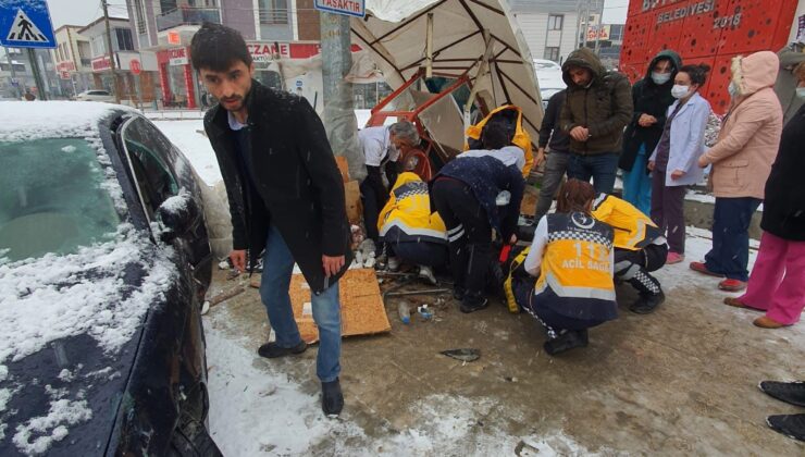 Kaza, Merkezefendi ilçesi Muratdede Mahallesi’nde meydana geldi. Edinilen bilgiye göre; 29 Ekim Bulvarı üzerinde Cemaleddin D. (39) idaresindeki 20 ABP 346 plakalı otomobil sürücüsü kar yağışı nedeniyle direksiyon hakimiyetini kaybetti. Yol kenarında kaldırımda seyyar tezgahta simit satıcısı 61 yaşındaki Cemil Varol’a çarptı. Çevredekilerin ihbarı üzerine olay yerine sağlık ve polis ekipleri sevk edildi. Bölgeye gelen sağlık ekibi Varol’a yaptığı ilk müdahalenin ardından ambulansla hastaneye kaldırıldı. Otomobil sürücüsü Cemaleddin D., polis ekipleri tarafından gözaltına alınırken, yolcu konumunda bulunan eşi Hatice D. ise hafif şekilde yaralandı.
