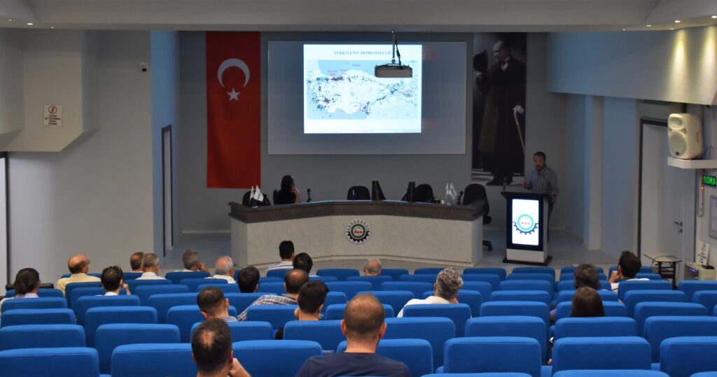 Seminer kapsamında Denizli Organize Sanayi Bölgesinde yer alan sanayi yapılarının büyük bir bölümünü meydana getiren prefabrik yapılar ele alındı. Prof. Dr. Şenel uzun bir süreyi kapsayan ve Denizli OSB’de bulunan binaları ele aldığı çalışmalardan elde ettiği sonuçlar hakkında sanayicilerimizi bilgilendirdi. Mevcut binalarımız ile ilgili sahada ve proje arşivlerinde yapılan envanter çalışmalarından elde edilen bilgileri sanayicilerimiz ile paylaşan Prof. Dr. Şenel, benzer özellikleri taşıyan prefabrik binaların geçmiş depremlerde ne tür hasarlar ile karşı karşıya kaldığını resimler ve fotoğraflar yardımıyla açıkladı.