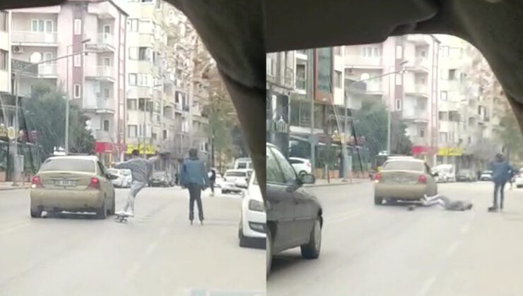 Olay, Pamukkale ilçesi Kıbrıs Şehitleri Caddesinde meydana geldi. Trafiğin yoğun olduğu anlarda bir otomobilin yan kısımlarına tutunan 2 genç paten ve kaykayla seyahat etmeye çalıştı. O anlarda durumu fark ederek otomobilin arkasından gelen diğer sürücüler yavaşladı.