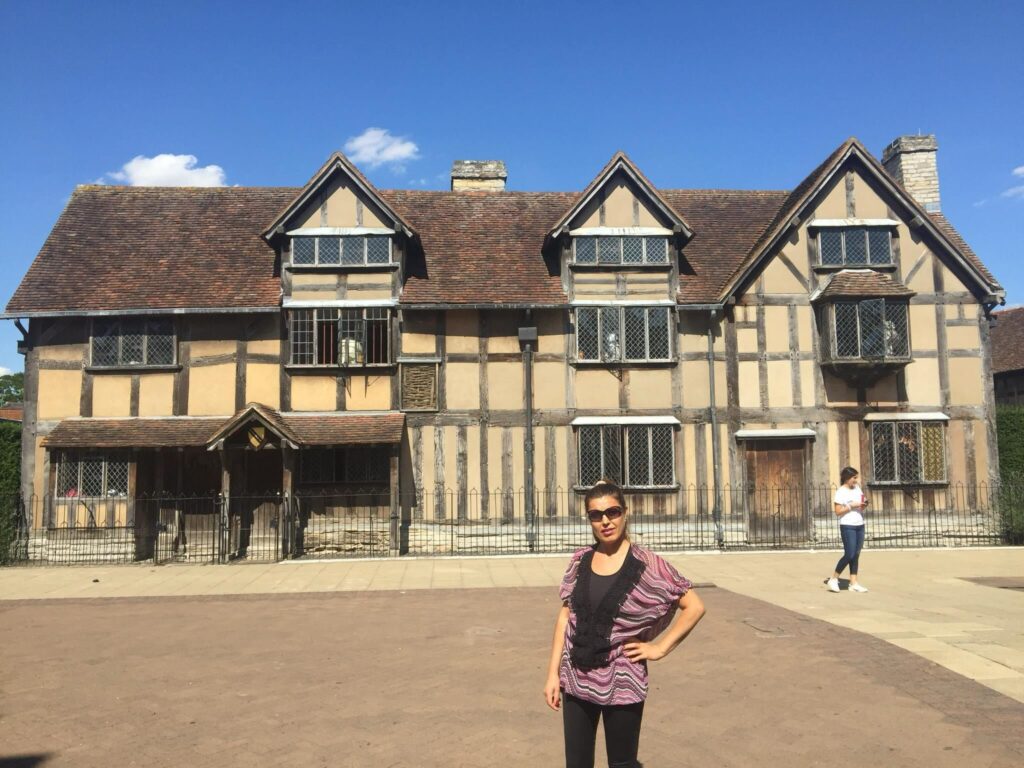 STRATFORD UPON AVON KASABASI : Londra’dan 2,5 saat uzaklıkta bulunan Stratford Kasabası, Avon Nehri üzerine kurulmuş. Ahşap tarihi evleri ile Orta Çağ görünümünde şirin bir kasaba. Tabii ki William Shakspeare’in memleketi olunca her yerde sanatçının yaşadığı mekanlar bulunuyor. Kendisinin ve ailesinin yaşamış olduğu evler, müze olarak gezilebiliyor. Evinin bahçesinde eserleri tiyatro olarak gösterime sunuluyor. En ünlü eserlerini hatırlarsak; Romeo ve Jüliet, Hamlet, Othello, Bir yaz gecesi rüyası, Kral Lear, Macbeth, Julius Caesar sayabiliriz. Bizler de evini gezerken, hayatımızda izlemiş ya da duymuş olduğumuz “olmak ya da olmamak, işte bütün mesele bu!” dediği kafatasını elinde tuttuğu Hamlet eserinin sergilendiği oyuna rastladık ve izledik. W. Shakespeare, bu kasabada 1564 yılında doğmuş ve 1564 vefat etmiştir. Kendisinin ve ailesinin gömülü olduğu kilisenin adı Kutsal Üçlü (Holy Trinity) Kilisesi’dir. Shakespeare Sokağı’nı geçtikten sonra Avon Nehri’ne ulaşıyorsunuz. Nehir kıyısında dolaşarak yemyeşil parklarında keyifli zamanlar geçirebilirsiniz. Bu kasabayı gezerken görüyoruz ki, çok kalabalık. Dünyanın her yerinden turistler mutlaka burayı görmeye geliyorlar.