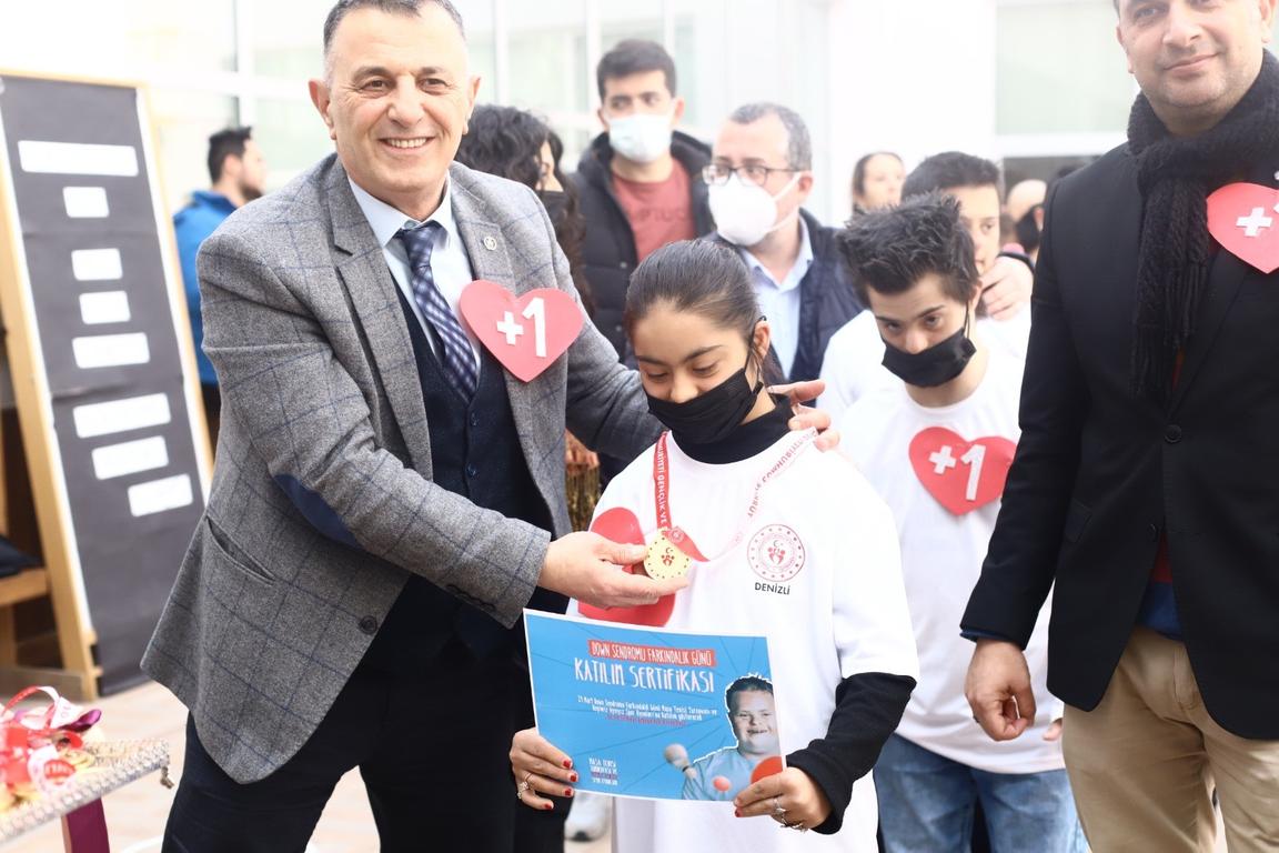 Down Sendromu Farkındalık Gününde çocuklarla bir araya gelen Gençlik ve Spor İl Müdürü Ahmet İbanoğlu, dünyada down sendromlu çocukların farklı bir değer olduğunu söyledi. Spor ve oyun gibi etkinliklerle güzel bir gün geçirmeleri için böyle bir etkinliğin planlandığını söyleyen İbanoğlu, Denizli’de özel çocuklara yönelik her Çarşamba “Mutlu Çarşamba” projesinin devam ettiğini sözlerine ekledi. Etkinliğin sonunda bugünü hatırlamaları adına tüm çocuklara madalya takıldı ve katılım belgesi verildi.