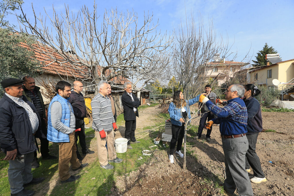 Cennet Şirin, özellikle Ege Bölgesi’nde ve Denizli’de yaygın olarak yetiştirilen meyve ağaçlarında budama ve aşılama yöntemlerini öğrettiklerini söyleyerek, “Bugün Ege Bölgesi’nde bilhassa Denizli’de ne yaygınsa o meyve ağaçlarında uygulamalı olarak eğitim veriyoruz. Budama işlemi, meyve kalitesi, daha sonra ağacın sağlıklı ve uzun ömürlü olması için her sene düzenli bir şekilde yapılması gerekmektedir. Budama işlemi yaparken ağaçta aradığımız öncelikli olarak güneş ve havanın eşit bir şekilde dağılması gerekir ki ağaç zararlı etkenlere karşı dirençli olmalı. İlk istediğimiz ağacın uzun ömürlü olması. Daha sonra meyve kalitesine bakıyoruz. Tüm bunlar doğru bir şekilde işlerse budama işlemlerini doğru yapmışızdır demektir. Eğer yanlış budama yaparsak, ağaç budama için kestiğimiz yerden mantar gibi hastalıklara maruz kalarak köke doğru kurumaya başlar. Bir ağacın yetişmesi 3-5 yıl iken, yanlış budama ile bu yılları ve emeklerimizi kaybediyoruz” diye konuştu.