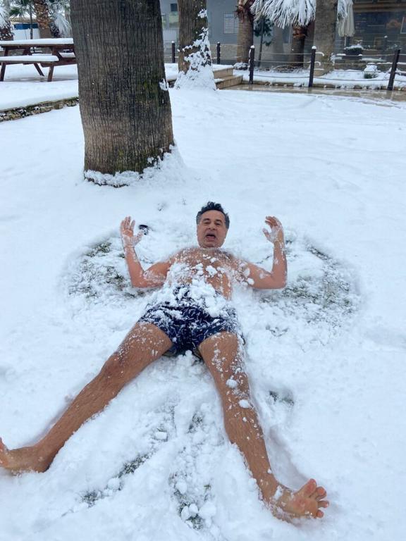 Soğuk havada tarihi sütunlar arasında bir tarafta sıcak suyun diğer tarafta ise lapa lapa yağan karın keyfini çıkartan turistler, bol bol fotoğraf çektirmeyi de ihmal etmedi.