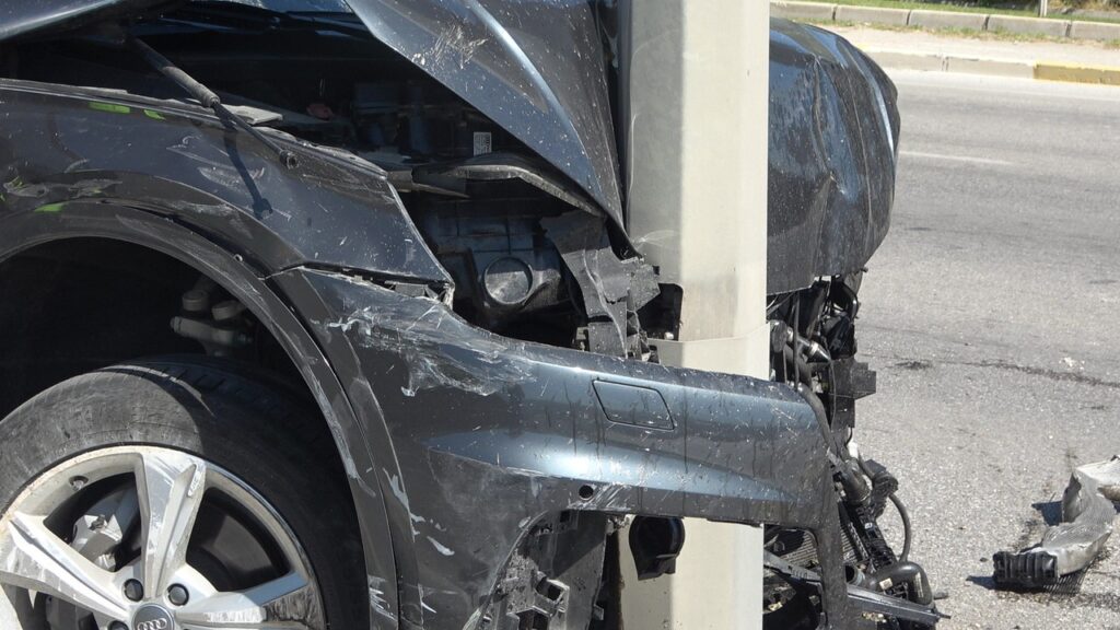 Denizli’de virajı alamayan otomobilin çarptığı SUV araç, kontrolde çıkarak orta refüjdeki elektrik direklerine daldı. SUV aracın iki direği devirdikten sonra üçüncüsünde takılıp kaldığı kazada 4 kişi yaralandı.