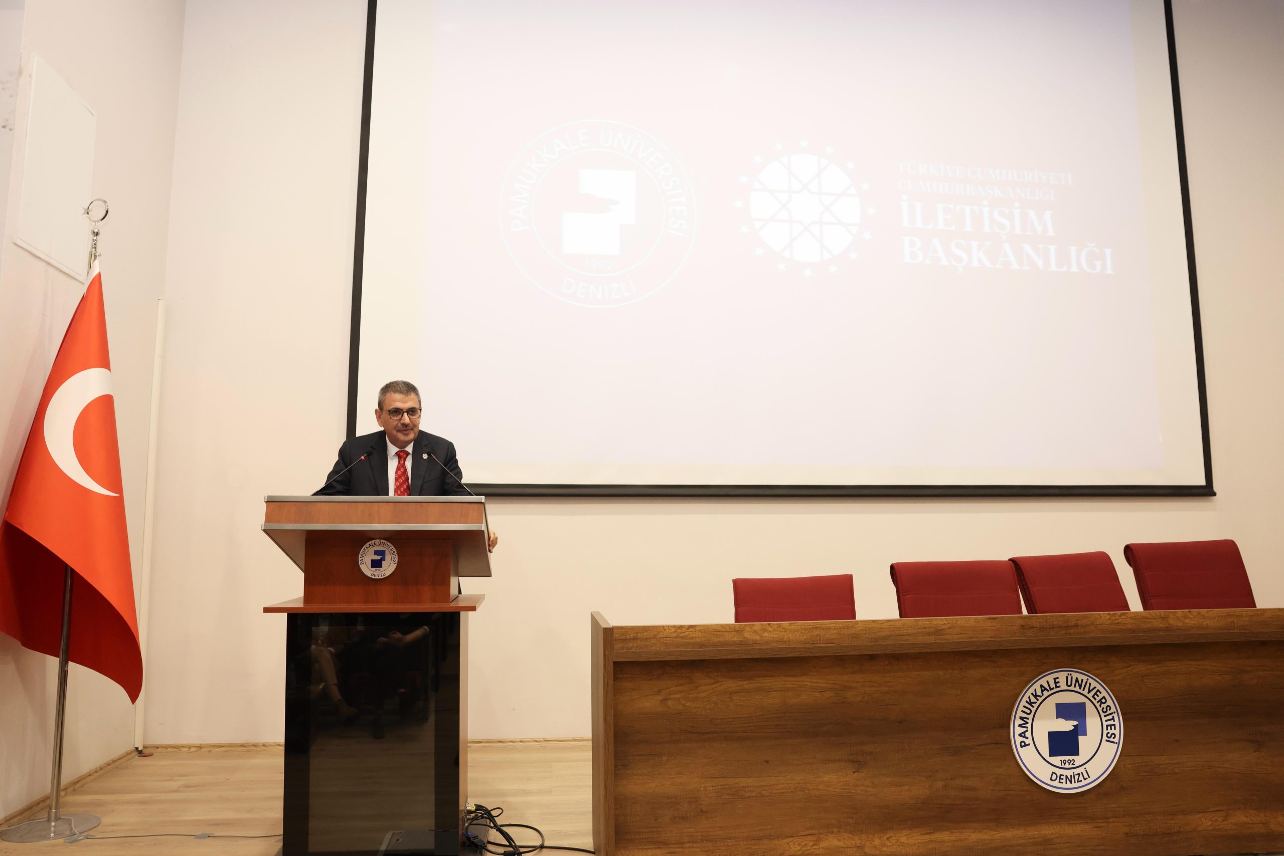 PAÜ Hierapolis Konferans Salonu’nda düzenlenen etkinliğe Pamukkale Üniversitesi Rektörü Prof. Dr. Ahmet Kutluhan, Rektör Yardımcısı Prof. Dr. Recep Şahin Arslan, Cumhurbaşkanlığı İletişim Başkanlığı Muğla Bölge Müdürü Ahmet Uzun, İletişim Fakültesi Dekanı Prof. Dr. Ali Soylu, PAÜ SKS Daire Başkanı Doç. Dr. M. Tahir Dursun, PAÜ Dezenformasyonla Mücadele Topluluğu Danışmanı Prof. Dr. Özay Özpençe, akademisyenler ve öğrenciler katıldı.