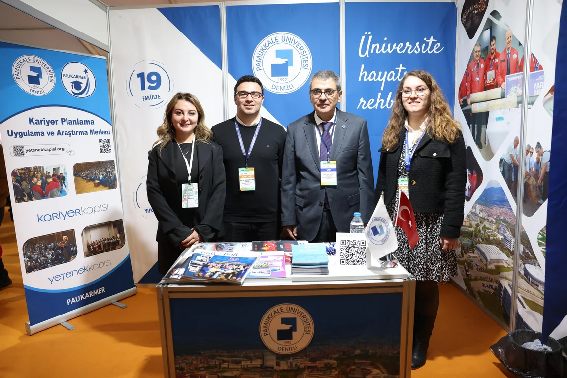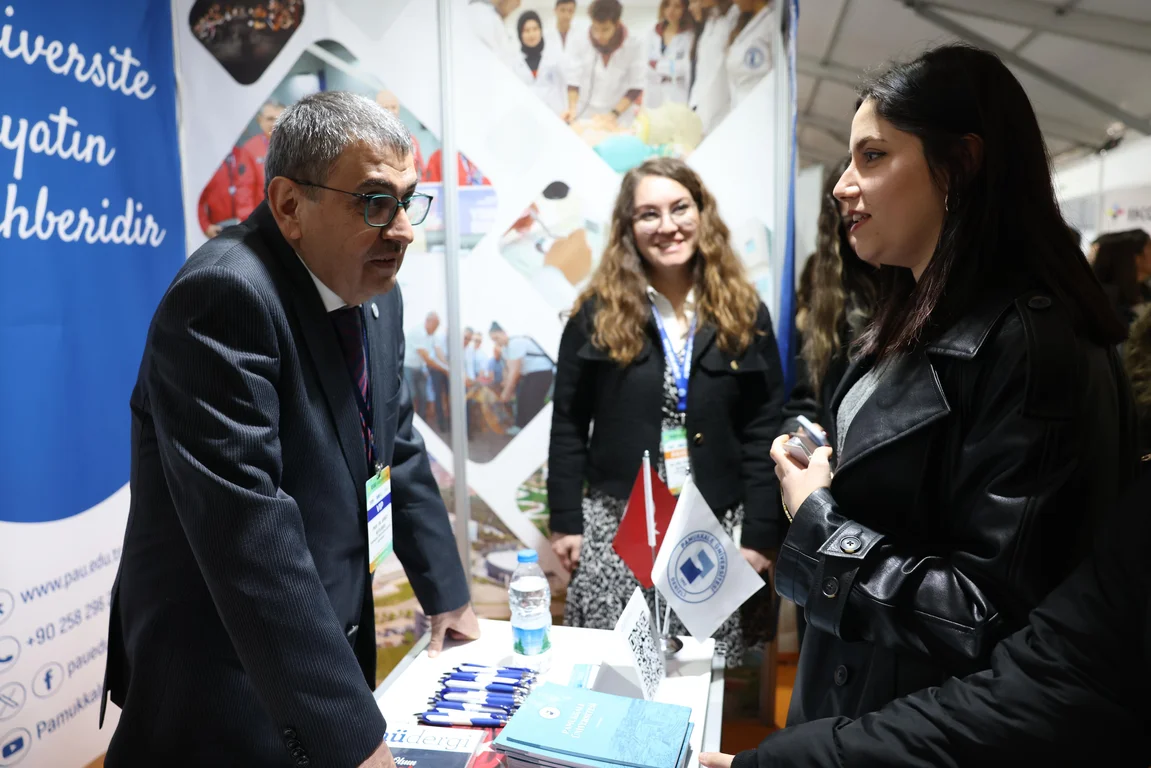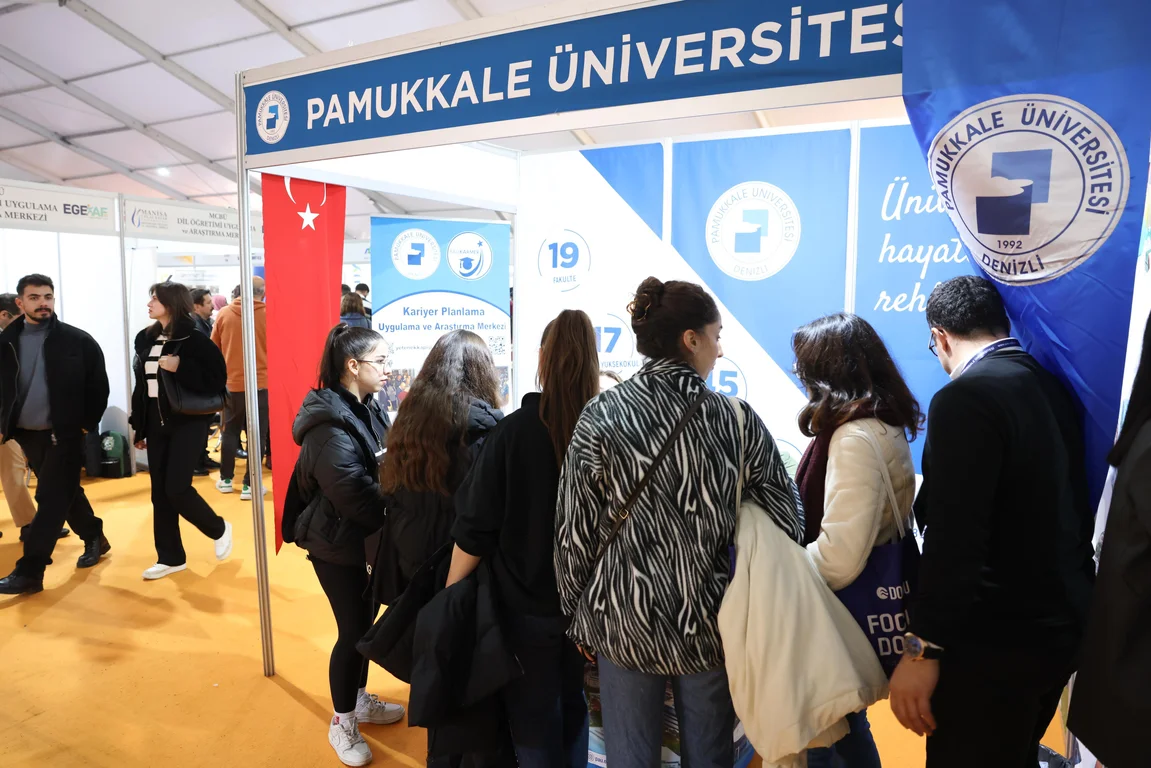 Pamukkale Üniversitesi (PAÜ), bu yıl dördüncüsü 26-27 Şubat tarihlerinde Manisa Celal Bayar Üniversitesi ev sahipliğinde düzenlenen Ege Kariyer Fuarı’nda (EGEKAF) yerini aldı. Rektör Prof. Dr. Ahmet Kutluhan programın açılış törenine katılarak, açılış sonrası PAÜ Kariyer Merkezi standı ile bir Denizli’den fuara katılan firmaların stantlarını ziyaret etti.