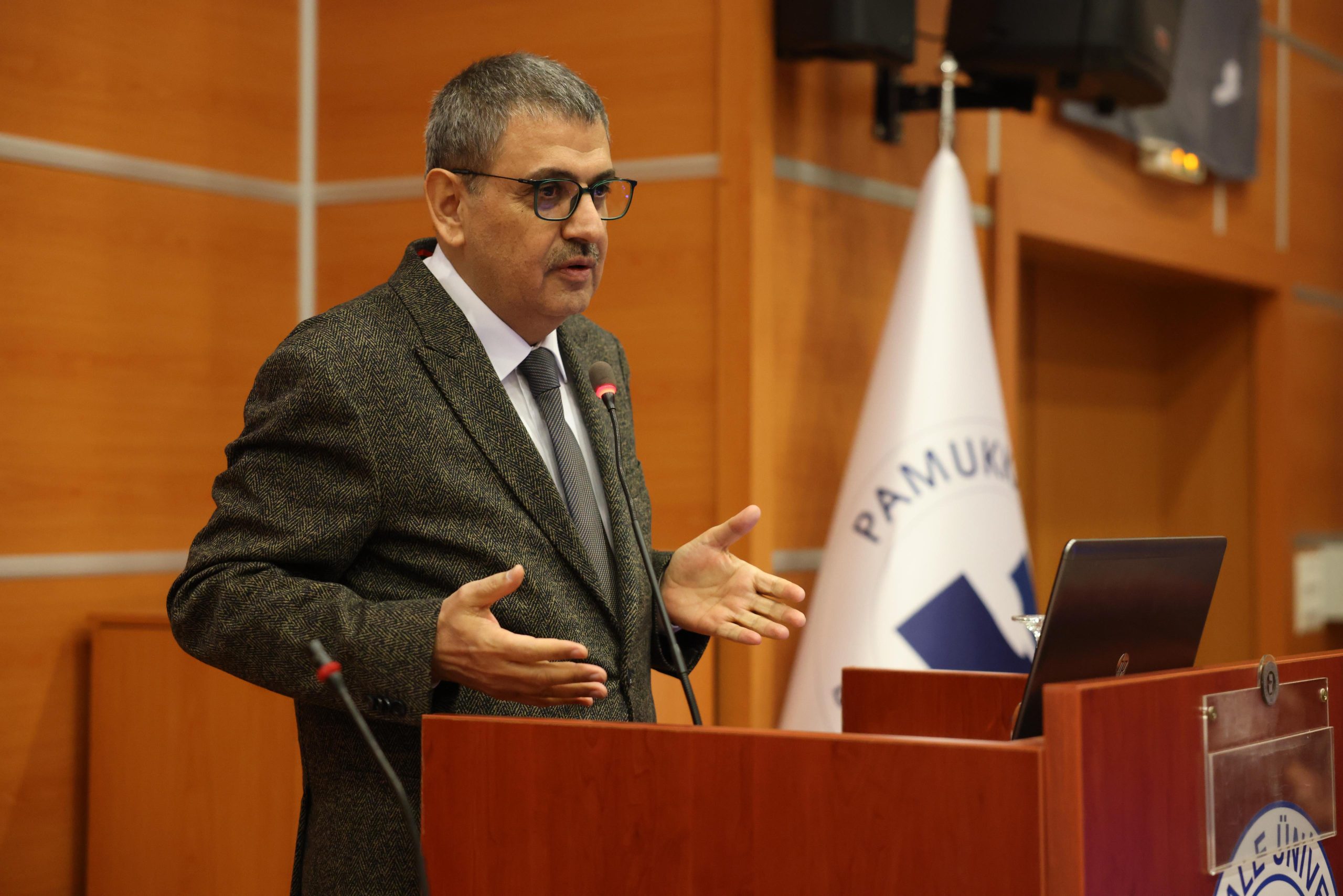 Programda konuşma yapan Pamukkale Üniversitesi Rektörü Prof. Dr. Ahmet Kutluhan şunları kaydetti: “Üniversitemiz gerçekten üreten bir üniversite ve üniversite hayatın rehberidir. Şehirle bütünleşme noktasında Pamukkale Üniversitesi çok üst bir düzeye geldi. Bugün bu programdan sonra, şehir bütünleşmesinin hukuk fakültesindeki en üst noktası olan Baro Başkanlığımız ile ‘Baro Akademik Protokolü’ adında bir protokolümüz olacak. Bu protokol ile Hukuk Fakültesi hocalarımız Baromuzdaki avukatlarla iş birliği yaparak Denizli’deki bu hukuksal problemlerin çözümünde çok etkili bir katkı sağlayacaklar. Pamukkale Üniversitesi’nin diğer bir özelliğinden bahsedecek olursam, PAÜ simülasyon kelimesini aslında sevmez çünkü simülasyon taklit demektir. Bizler burada taklit değil aslında empati yapıyoruz. Meclis simülasyonunda da meclisin empatisini yapmamız lazım. Burada yemin edecek öğrencimiz kendisini milletvekili olarak hissetmesi lazım. Empatinin iki yönü var. Bir tanesi olan olayın kendi içeriği, diğeri karşı tarafın durumudur. Tüm bunlar içinde avukatımız, savcımız, mahkeme başkanımız hepsi empati yaparak olaya baktıklarında gerçek çözüme ulaşılır. Düzenlenen bu meclis simülasyonunda gerçek ve doğru bir kanun ortaya çıkacağına inanıyorum. Empati eksikliğinden kaynaklığına inanıyorum. İnşallah bu meclis simülasyonlarımız da her yıl geliştirilerek yapılır. Biz üniversite olarak da empati yaptığımız için üniversitemizi tercih eden ama imkanları sınırlı olan öğrencilerimizi daima gözetmeye çabalıyoruz. Ben bu vesile ile Baro Başkanımızdan şöyle bir destek rica edebilir miyiz acaba? İlk 1000 içinden bizim Hukuk Fakültemizi tercih eden öğrencilerimize burs imkânı sağlamak konusunda. Baro Başkanım da destek sözü verdiği için bu konuda tekrar teşekkür ederek topluca alkışlayalım isterim. Konuşmama son verirken etkinliğin başarılı olmasını dilerim.”