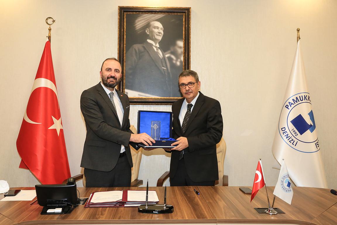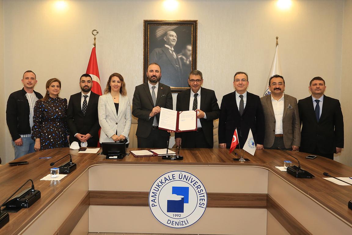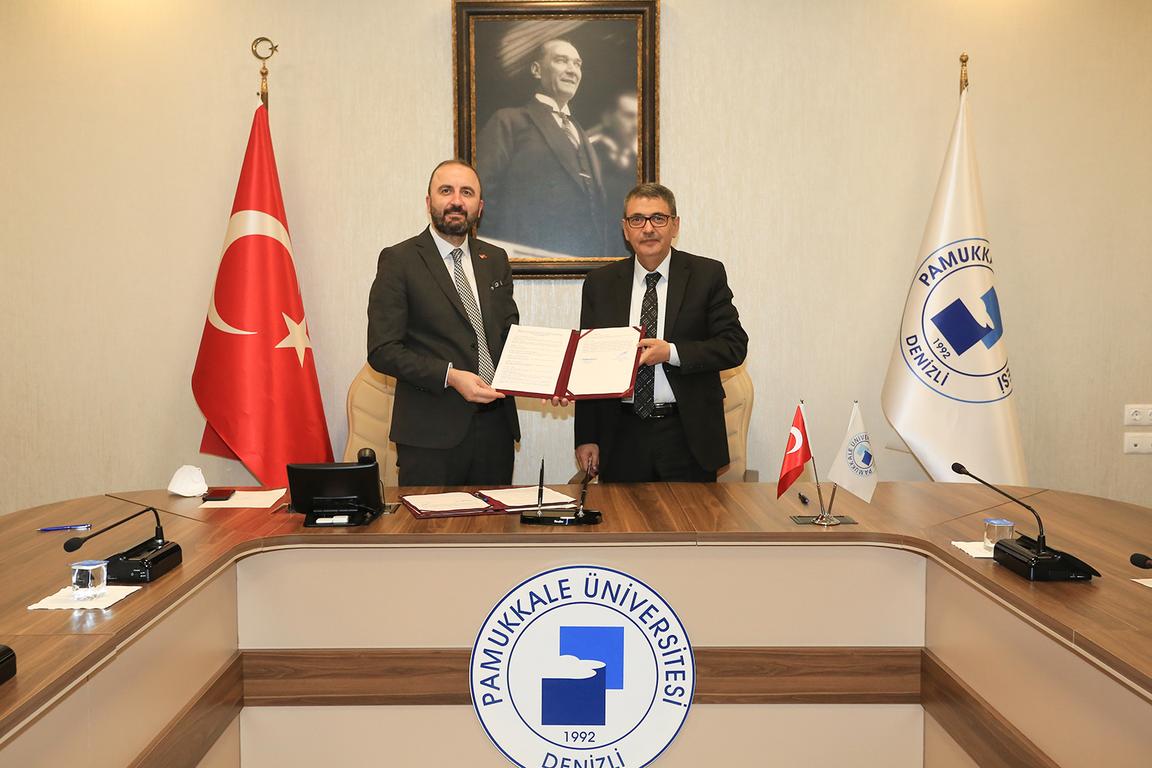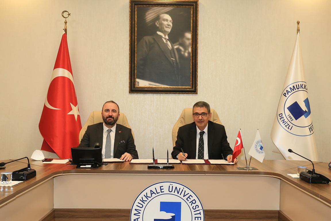Pamukkale Üniversitesi (PAÜ) Rektörlüğü’ne bağlı 17 Nolu Sağlık ve Sosyal Hizmetler işkolunda çalışan işçiler adına 01.09.2020-31.12.2022 yürürlük süreli toplu iş sözleşmesi, Çalışma ve Sosyal Güvenlik Bakanlığı’nın Kamu Toplu İş Sözleşmeleri Çerçeve Anlaşma Protokolü’ne uyumlu hale getirildi. Ek protokol, mevcut protokolün tarafları; PAÜ Rektörlüğü ile Öz Sağlık ve Sosyal Hizmet İşçileri Sendikası (Öz Sağlık-İş) arasında imzalandı. Yapılan ek protokol çerçevesinde, Öz Sağlık-İş Sendikasına üye işçilerin; taban ücret, sosyal yardım, giyim ve koruma malzemesi yardımı ücretlerine ilişkin konularında iyileştirmelere gidildi. Ek protokol, Rektör Prof. Dr. Ahmet Kutluhan ve Öz Sağlık-İş Sendikası Genel Başkan Yardımcısı Âdem Yavuz tarafından imzalandı.