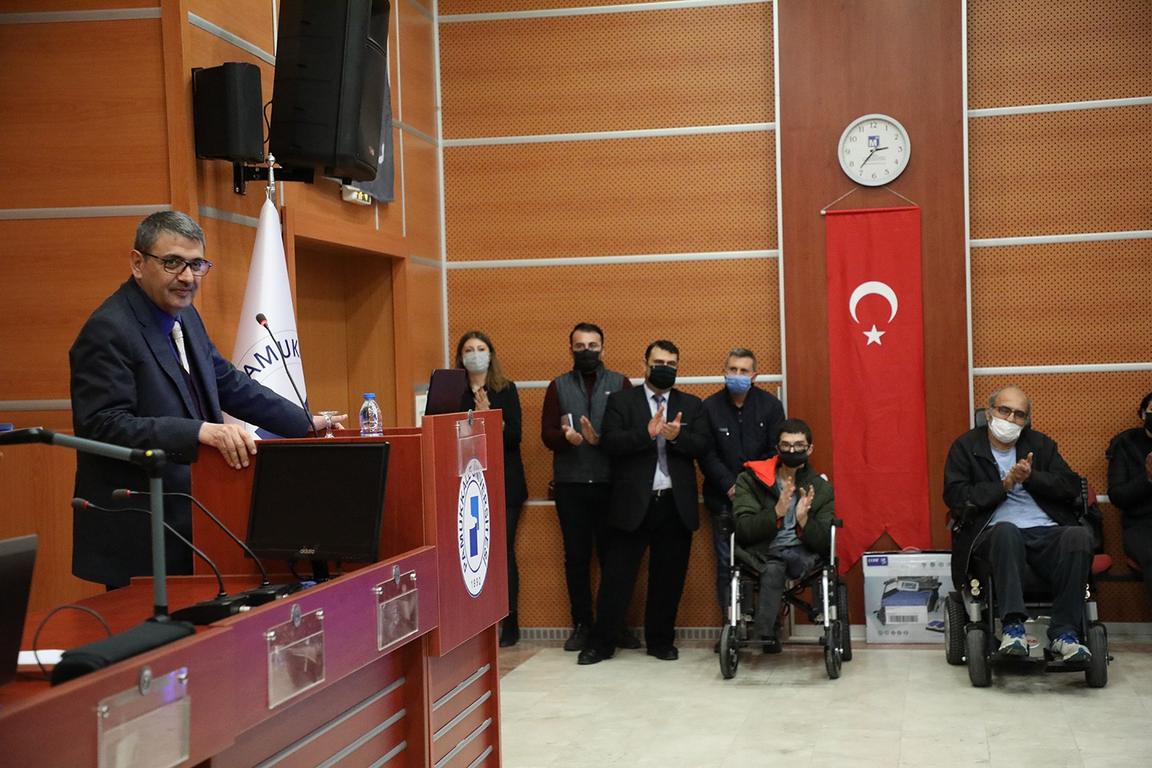 Akülü tekerlekli sandalyelerden bir tanesi, ilerleyen yaşına rağmen engel tanımadan öğrenim hayatını sürdüren PAÜ Fen Edebiyat Fakültesi Tarih bölümü öğrencisi Atilla Atilla’ya takdim edildi. Azim ile tüm engellerin aşılabileceğini kanıtlayan, 50 yaşındaki öğrenci Atilla Atilla, gerek öğrenim hayatı gerekse sosyal hayatında bu akülü tekerlekli sandalyenin kendisine büyük bir kolaylık sağlayacağını ifade etti. Tarih bölümünü bitirmekte kararlı olduğunu dile getiren Atilla, emeğini geçenlere teşekkürlerini iletti.