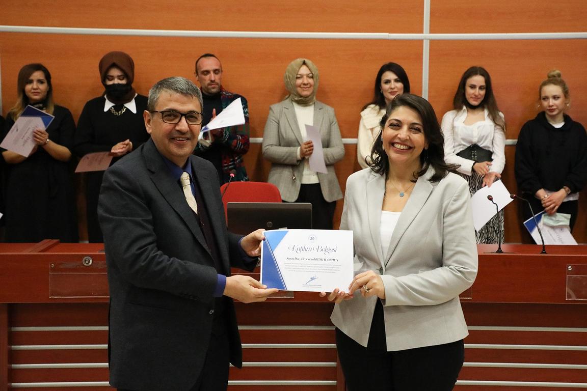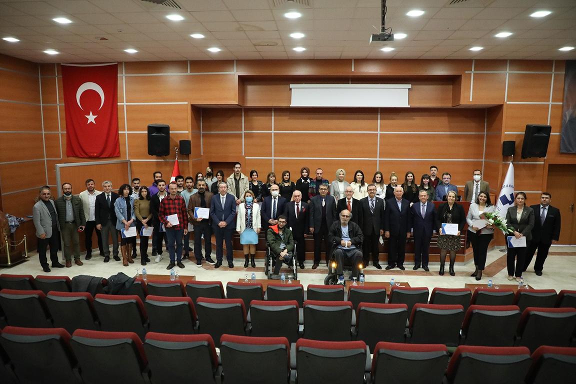 Sergiden elde edilen gelir ve bağışlarla alınan; akülü tekerlekli sandalye ve sesli kitap okuma sistemi, Rektör Prof. Dr. Ahmet Kutluhan tarafından engelli öğrencilere takdim edildi. Programın sonunda, Doç. Dr. Feryal Beykal Orhun’un küratörlüğünde düzenlenen karma sergiye eserleri ile katkıda bulunan öğretim üyesi ve öğrencilere; Rektör Prof. Dr. Ahmet Kutluhan, Rektör Yardımcıları; Prof. Dr. Necip Atar ve Prof. Dr. İbrahim Kısaç, Dekanlar ile YÖV yönetim kurulu üyeleri tarafından teşekkür belgeleri takdim edildi.
