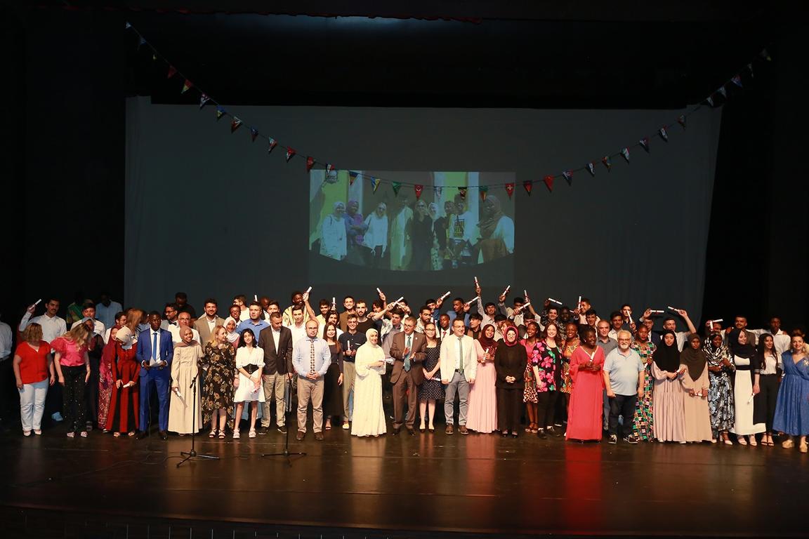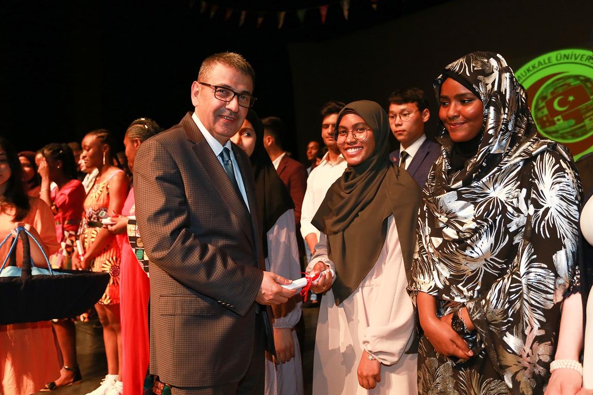 Törenin devamında, öğrencilere sertifikaları Rektör Prof. Dr. Ahmet Kutluhan ve Rektör Yardımcıları; Prof. Dr. Necip Atar ve Prof. Dr. Selçuk Yüksek tarafından takdim edildi. Program, günün anısına toplu fotoğraf çekiminin yapılması ve öğrencilerin hep birlikte “Hayat Bayram Olsa” isimli şarkıyı seslendirmeleri ile sona erdi. PADAM’dan bu yıl 75 öğrenci kur sınavında başarı elde ederek C1 düzeyi Türkçe sertifikasını almaya hak kazandı. İHA
